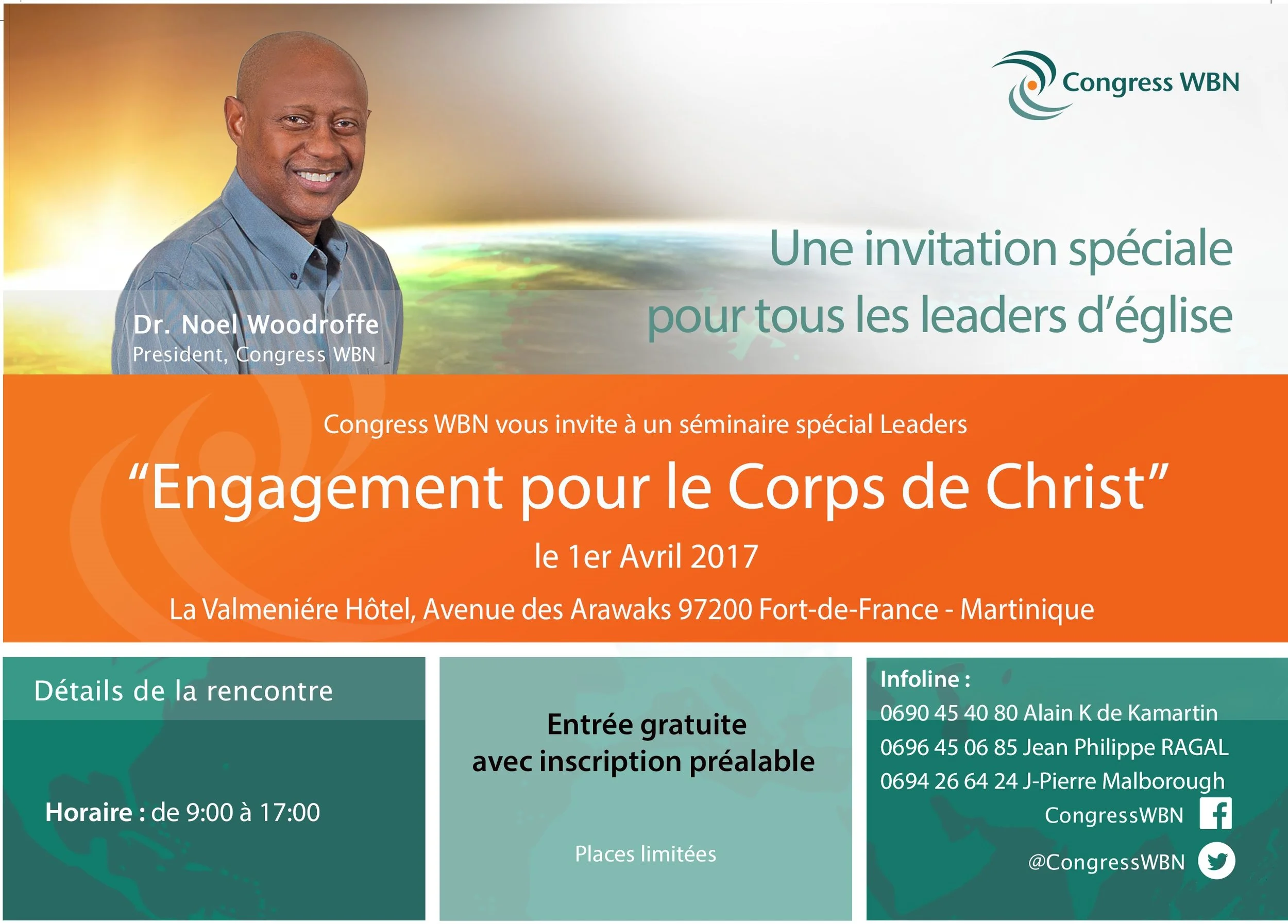 Dr. Noël Woodroffe, fondateur du Congress WBN, vous invite à une nouvelle compréhension du mouvement de Dieu qui parcourt actuellement la terre. Venez redynamiser votre sentiment d'appel à un séminaire unique appelé "Engager le Corps de Christ".